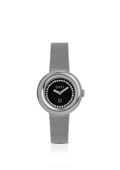 OPS! WATCH CURVY CASSA TONDA 30 MM SILVER+BR MESH SILVER+QUAD NERO LUCIDO