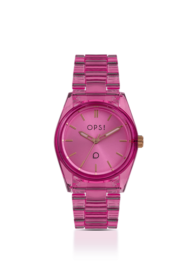OPS! WATCH VIVID CASSA PLASTICA TRANSP 36 MM ROSA + BRACCIALE TRANSP ROSA