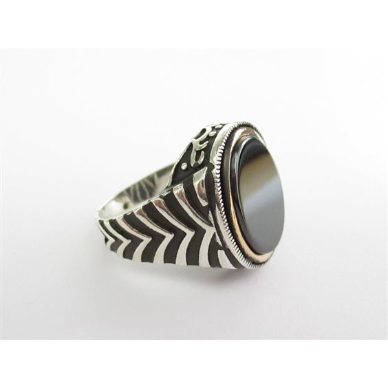Anello in argento 925% ideato e realizzato da maestri orafi italiani, l'anello è impreziosito da un elemento in onice nero ovale, peso 14.9 grammi, misura 22.