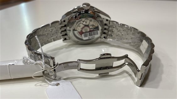 Orologio Uomo Oris automatico, Cronografo, fondo nero, vetro zaffiro con datario a numero 6, Water resistant 10 BAR, fondello a vista.