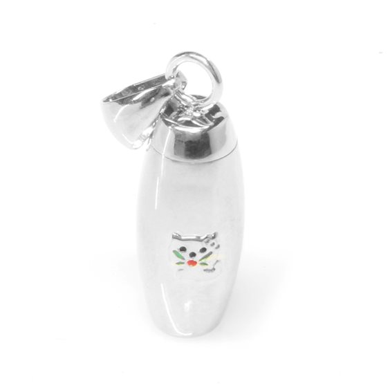 Un monile unico nel suo genere, ideato per custodire le nostre memorie, preservandole inalterate nel tempo e regalando ad ogni persona un ricordo sempre vivo e vicino. E' un prodotto a marchio "Made in Italy", realizzato interamente in argento 925%, nickel free e anallergico. Il ciondolo è composto da due parti: Un tappo rifinito con una filettatura a tenuta stagna, che lo rende adatto anche per conservare essenze e profumi. Un contenitore ricavato da un attento e preciso lavoro di tornitura di un cilindro massiccio in argento 925%, un materiale nobile ed estremamente versatile.