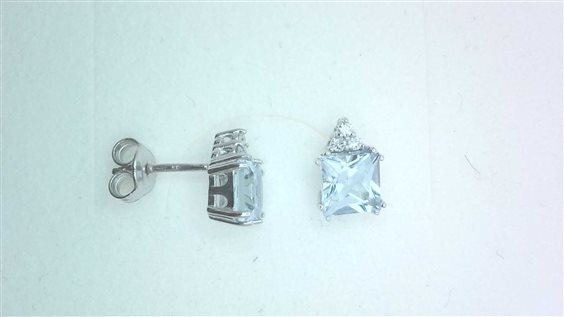 Orecchini in oro bianco con 2 acquamarina taglio princess e 9 diamanti taglio brillante rotondo