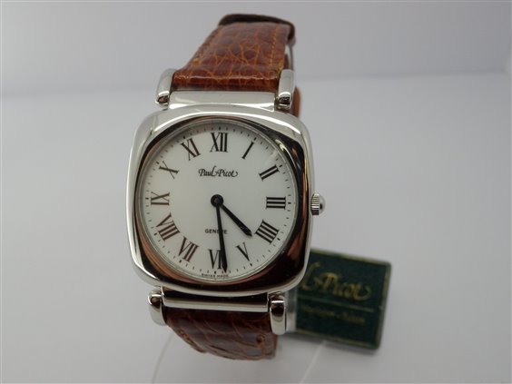 Orologio funzioni ore e minuti. Vetro zaffiro, fondello serrato a pressione. Cinturino in coccodrillo con anse snodare e chiusura ad ardiglione.