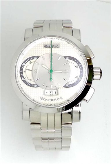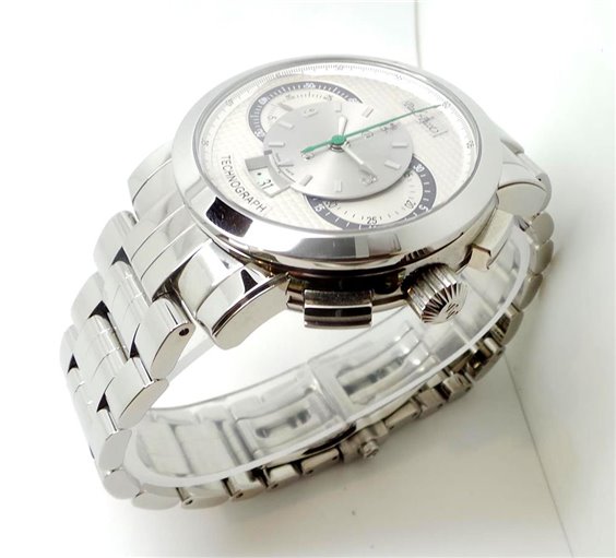 Cassa in acciaio, 43 mm, bracciale in acciaio, movimento automatico con cronografo, doppio vetro zaffiro, impermeabilità 100 mt, quadrante costruito su 3 livelli con disco centrale ore elevato a sbalzo