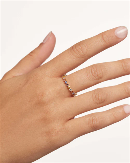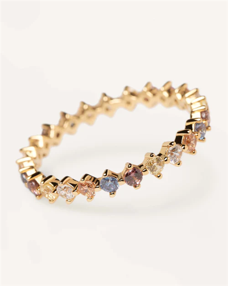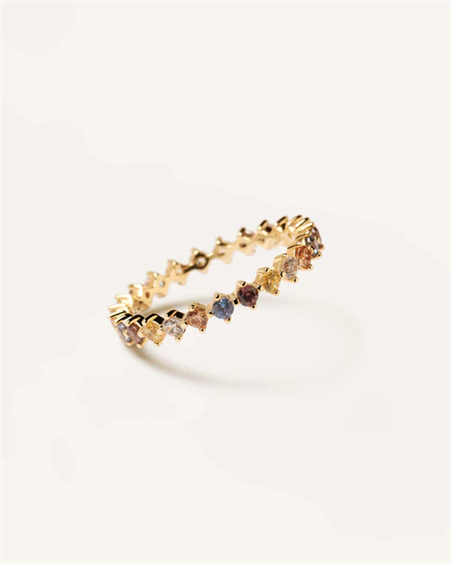 Anello Da Donna Di Pdpaola Della Collezione Five. Anello Con Pietre: Corindone Blu Zaffiro, Zirconi Rodoliti, Zirconi Champagne, Zirconi Giallo Oro, Zirconi Bianchi Puri. Peso: 1,3 G. Misura: 12. Gioiello Realizzato In Argento Sterling 925 Con Placcatura Oro 18K. La Referenza È An01-209-12. Questo anello verrà spedito con Scatola Originale PDPaola se prevista dal brand