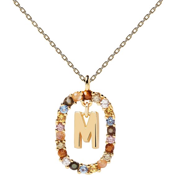 Materiale: argento sterling Finitura: placcatura in oro 18k Pietre: Occhio di tigre Labradorite Madreperla con cristallo Cristallo oro giallo Cristallo verde peridoto Cristallo verde oliva Cristallo spinello azzurro Cristallo violetto rodolite Cristallo bianco puro Diametro delle pietre: 1,5 mm Dimensioni dell’ovale: 10,5 x 15 mm Altezza lettera frontale: 6,5 mm Spessore della lettera: 3 mm Catena: chiusura regolabile da 40 a 50 cm Peso: 2,5 g