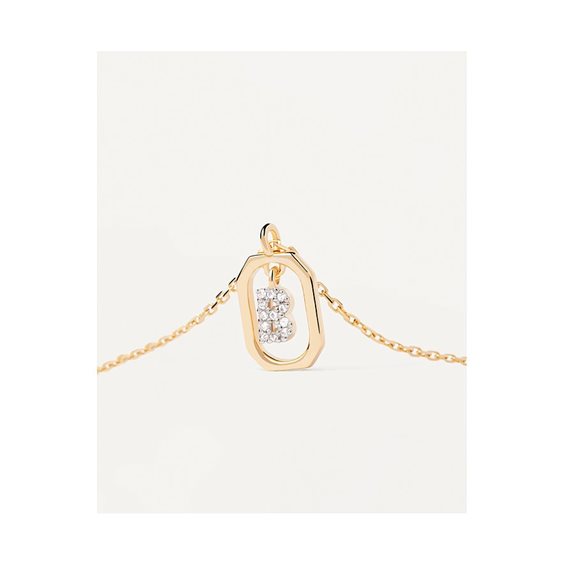 MATERIALE: Argento sterling FINITURA: Placcatura in oro 18K PIETRE: Zirconi Bianchi DIAMETRO DELLE PIETRE: 0,8 mm DIMENSIONI DEL CIONDOLO: 9 x 7 mm LUNGHEZZA DELLA CATENA: Chiusura regolabile da 40 cm a 50 cm SPESSORE DELLA CATENA: 0,5 mm Lettera B