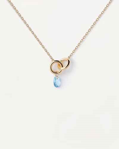 COLLANA LILY BLU Materiale: argento sterling Finitura: placcatura in oro 18k Pietre: zirconi blu cielo Lunghezza della catena: chiusura regolabile da 400 cm a 500 cm Dimensione della pietra: 6 mm Peso: 2,32 g