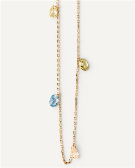 Materiale: argento sterling Finitura: placcatura in oro 18k Pietre: zirconi verde oliva, zirconi pesca, zirconi blu cielo, zirconi verde lime Lunghezza della catena: chiusura regolabile da 400 cm a 500 cm Dimensione della pietra: 6 mm Peso: 2,13 g