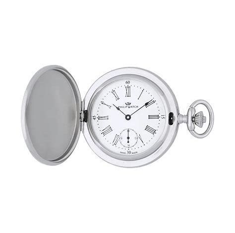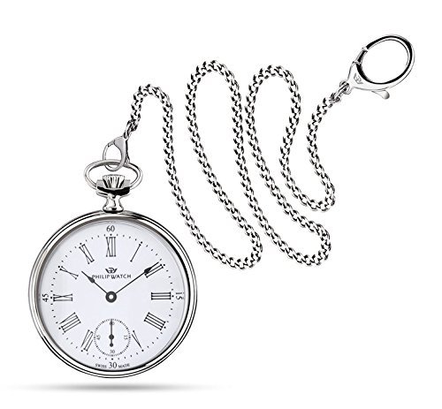 Orologio tasca Philip Watch meccanico modello Savonette mm 50 in acciaio con catena . Garanzia Philip Watch 2 anni .