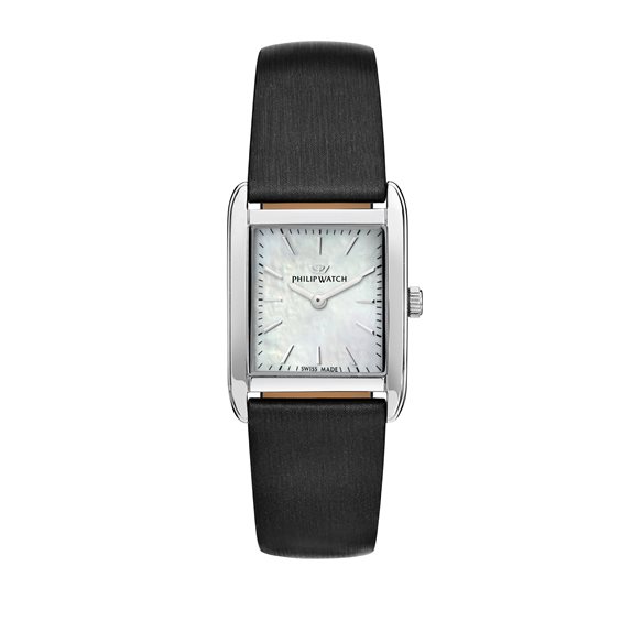 OROLOGIO DONNA CON QUADRANTE 34X24,7mm. MOVIMENTO AL QUARZO CON VETRO ZAFFIRO CURVATO. QUADRANTE IN MADREPERLA,FONDELLO SERRATO A VTE E CINTURINO IN SATIN.