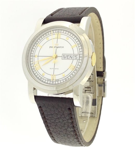 Orologio Philip Watch Wisdom D-Date Uomo, Cassa Acciaio Diametro 36 mm, Cinturino Pelle Marrone, Vetro Minerale, Fondello con Vetro Minerale con Movimeto Meccanico Automatico ETA 2836 a vista, Datario con Giorno Settimana e Giorno Mese, Quadrante Bianco, Impermeabile