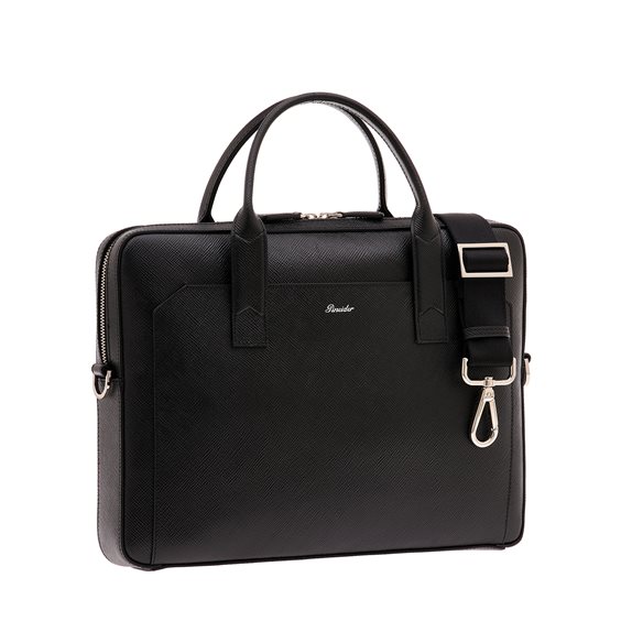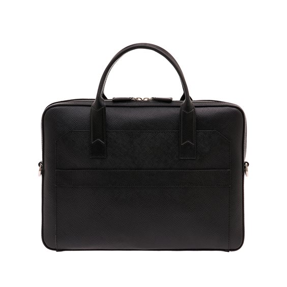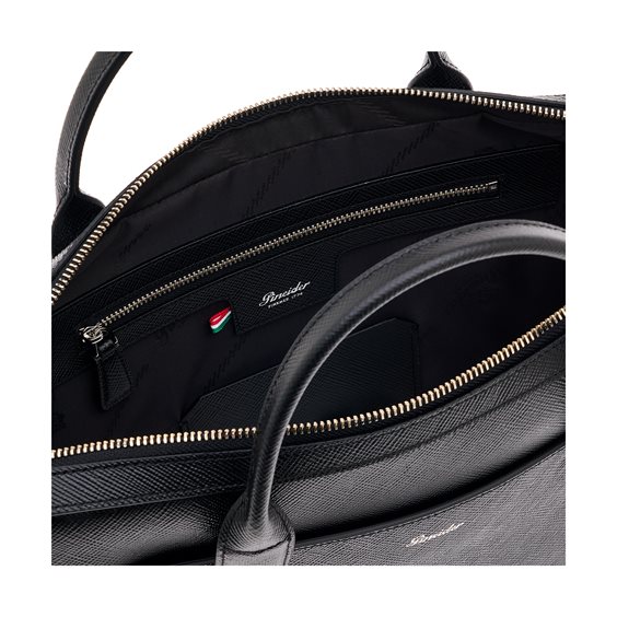 Cartella da lavoro medium in pelle di vitello saffiano della Collezione Mini Franzi. Due zip superiori con doppio scorrimento e tasca frontale piatta. Interno con tasca porta tutto, porta penne e porta cellulare. Dotata di Trolley System. I cavallotti fatti a mano conferiscono un tocco artigianale unico al design della briefcase. Il logo Pineider completa il design. Perfetta per chi cerca stile e funzionalità anche negli affari. Made in Italy.