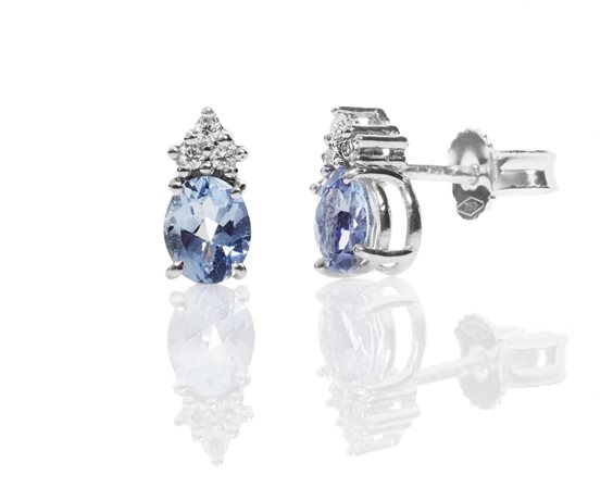 Orecchini a lobo in oro bianco 18 kt conn Acquamarina di kt. 2.00 in totale e diamanti taglio brillante di kt. 0.06 in totale VVS1 G Color