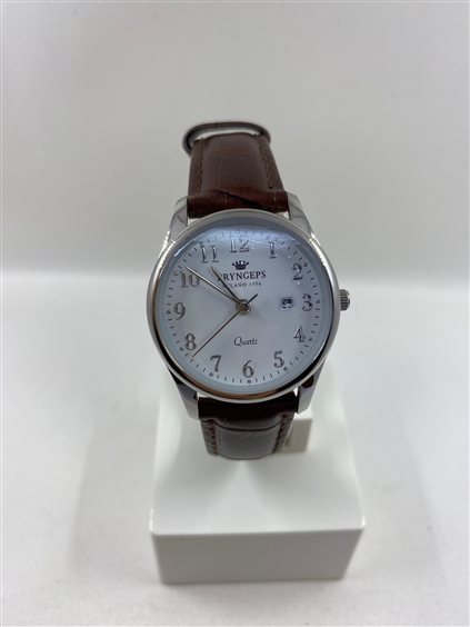 OROLOGIO PRYNGEPS DONNA CON CASSA IN ACCIAIO E CINTURINO IN PELLE MARRONE STAMPA COCCO. SOLO TEMPO, AL QUARZO, DISPLAY ANALOGICO. IMPERMEABILITA'3 ATM.