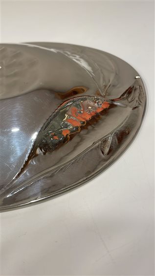 PREGIATO PEZZO D'ARGENTERIA DELL'ARTIGIANATO FIORENTINO. L'ALTA QUALITA' DEI MATERIALI E DELLA LAVORAZIONE SONO GARANTITI DAI MARCHI LEGALI IMPRESSI SUL PEZZO. PIATTO OVALE RENATO RADDI IN ARGENTO MASSICCIO 800, GR 283. PIATTO LAVORATO A MANO CON FOGLIE E CALLE.