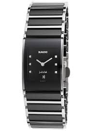 RADO COLLEZIONE INTEGRAL CASSA IN ACCIAIO IMPERMEABILE 3 ATM VETRO MINERALE BOMBATO QUADRANTE NERO CON BRILLANTI SU SEI INDICI(JUBILE')BRACCIALE IN CERAMICA ED ACCIAIO-