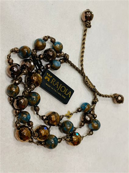 BRACCIALE NORMA RAJOLA A 3 FILI CON EMATITE MARRONE EMATITE BROWN E GOLDSTONE, CHIUSURA BRACCIALE CORDONCINO REGOLABILE.
