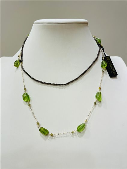 COLLANA ANITA RAJOLA IN ORO GIALLO KT 18 CON EMATITE MARRONE, PERIDOTO, GROSSULARIA.