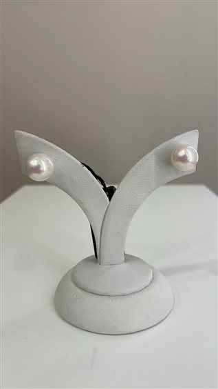 ORECCHINI NUDI RAJOLA IN ORO BIANCO KT 18 CON PERLE BIANCHE DI FIUME DAL DIAMETRO 10mm.
