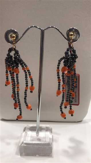 ORECCHINI RAJOLA COLLEZIONE MISTERO SCIACCA, NOMINATI BRINA IN ORO GIALLO KT 18 EMATITE NERA E CORALLO ROSSO DI SCIACCA.