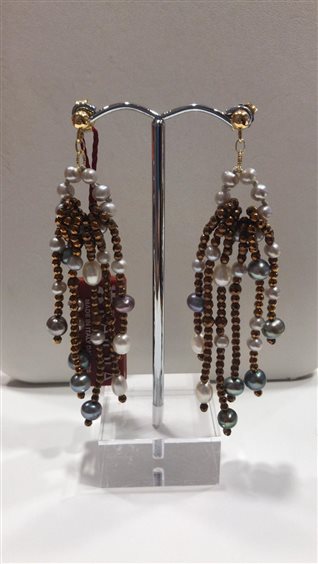 ORECCHINI RAJOLA BRINA PENDENTI IN ORO GIALLO KT 18 CON EMATITE BROWN E PERLE BIWA GRIGIE E BIANCHE.