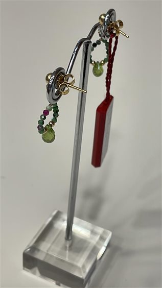 ORECCHINI RAJOLA PENDENTI CON RUBINI, ZOISITE E PERIDOTO, PERNO IN ARGENTO PLACCATO ORO GIALLO.