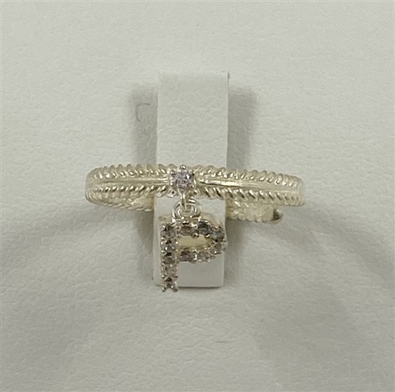 ANELLO REBECCA IN ARGENTO, MISURA REGOLABILE, CON INIZIALE "P" PENDENTE CON ZIRCONI
