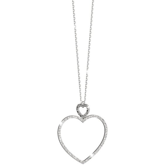 Collana In Bronzo Rodiato Di Colore Bianco. lunghezza catena 85 cm. cuore pendente effetto luce
