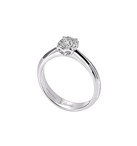 L'anello Recarlo è un elegante solitario realizzato in oro bianco 18 carati e impreziosito da un luminoso diamante taglio brillante. Pietra con certificato