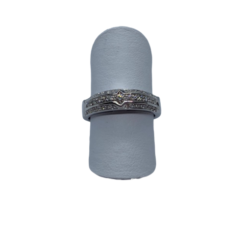 ANELLO IN ORO BIANCO 18 K CON DIAMANTI PER Ct 0,46. FASCETTA CON PAVE' DI DIAMANTI .