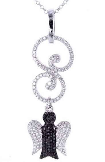 Collana Angelo in argento 925 impreziosito da zirconi bianchi e neri. Dimensioni ANGELO: base 1,4 cm - altezza 1,2 cm lunghezza totale: 5cm Collana in argento personalizzata GIANNOTTI Lunghezza collana regolabile 40 - 45 cm.
