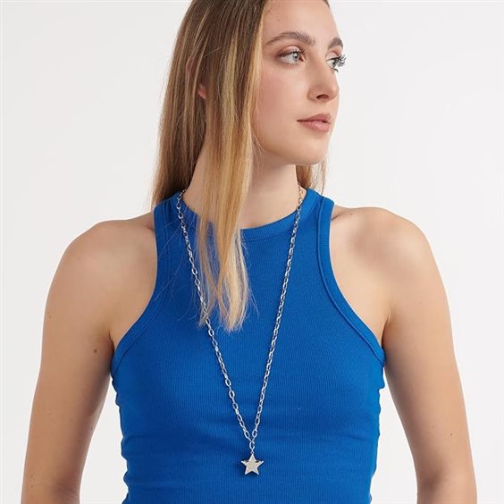 Collana lunga in acciaio 316L con pendente a forma di stella e cristalli.