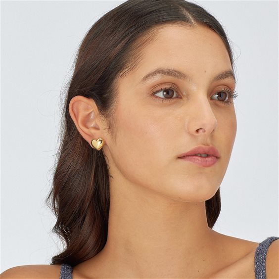 Orecchini a lobo in acciaio 316L a forma di cuore e finitura pvd oro 14k.