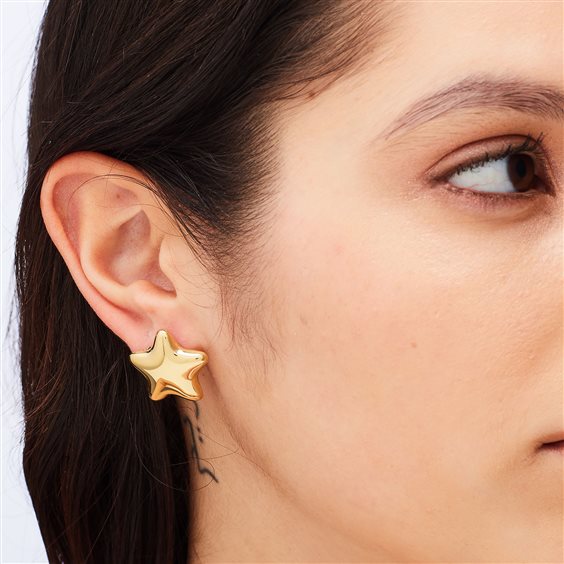 Orecchini a lobo a forma di stella in acciaio 316L e finitura pvd oro 14K.