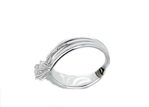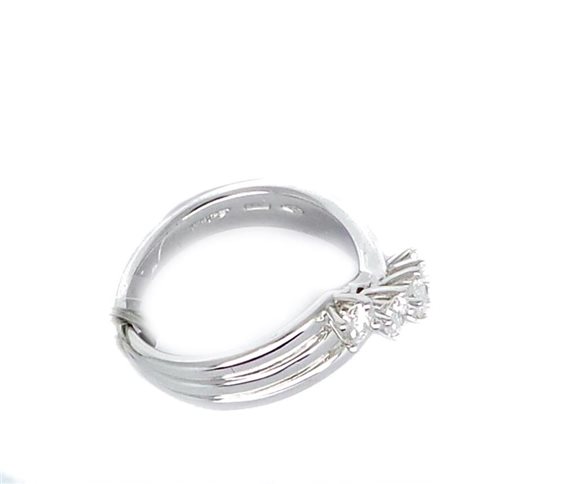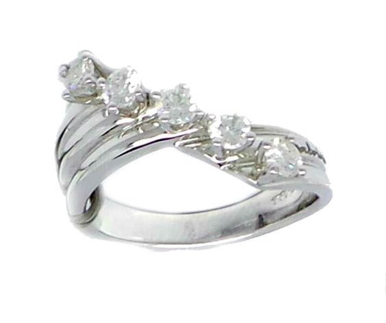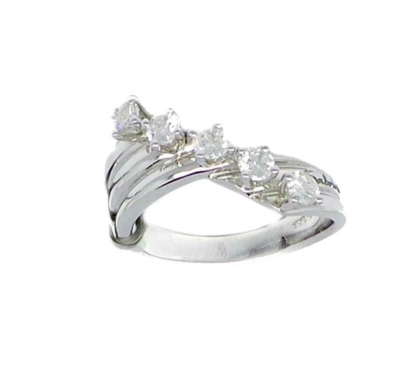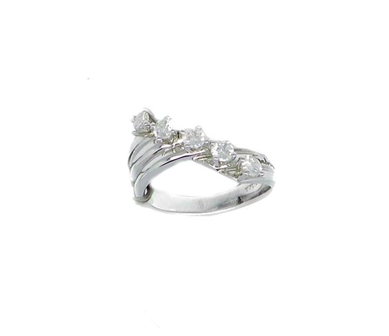 SALVINI veretta in oro bianco 750% (18 ct.) con 5 diamant incastonati a griffes, disposti in modo obliquo all'asse centrale, in modo da trasformare la veretta in una fascia fantasia. peso anello gr. 7.5 diamanti taglio brillante ct . 0.57 colore H Ogni gioiello Salvini è accompagnato da assicurazione gratuita contro rischi di scippo e rapina per tre anni.