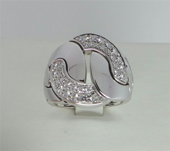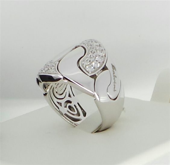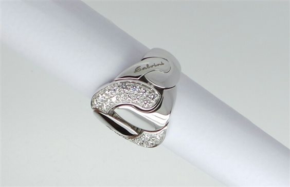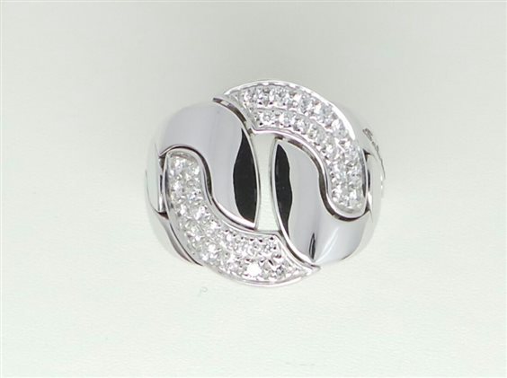 Anello SALVINI oro bianco e diamanti taglio brillante della collezione CRUISE con ampio centrale in pavé disegno a grumette a maglie mobili, lavorazione in microfusione con decori anche sulla parte interna. Garanzia ufficiale SALVINI e assicurazione contro scippo e rapina per 3 anni gratuita.