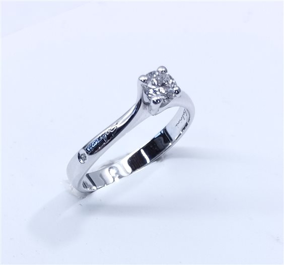 Anello Salvini donna solitario in oro bianco 18 Kt. con diamante taglio brillante di 0,35 ct. Vs G+ con originale montatura a quattro griffe . Misura 15 modificabile. Garanzia e Certificato di Autenticità Salvini con assicurazione rapina e scippo e scatola originale.