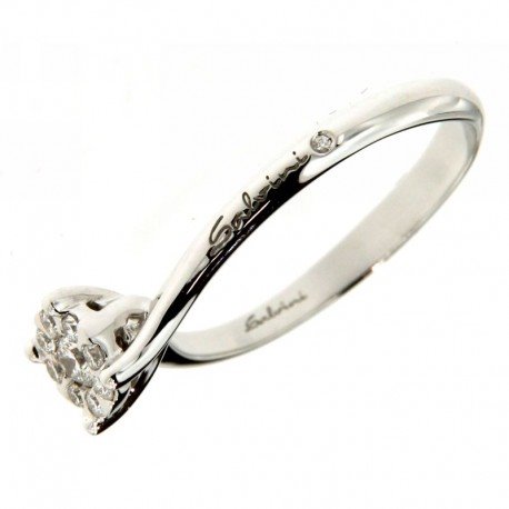 Anello Salvini in oro bianco lucido con diamante centrale contornato da una fila di diamanti taglio brillante ct 0.21 G/H. Misura 13 modificabile. Dimensioni testa anello 6.1 x 6.1 mm. Garanzia e Certificato di Autenticità Salvini e scatola originale.