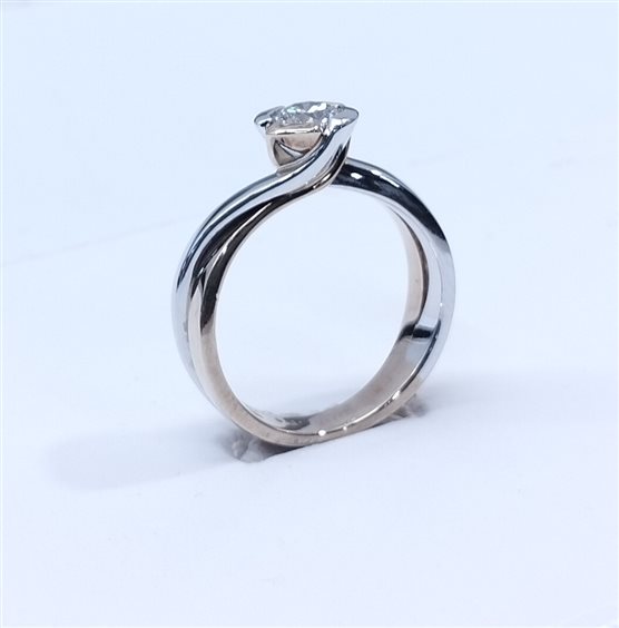 Anello Salvini donna solitario in oro bianco e rosa 18 Kt. diamante con taglio brillante di 0,51 ct. Vs H , castone in oro rosa e bianco forma quattro petali fiore. Misura 15 modificabile. Garanzia e Certificato di Autenticità Salvini con assicurazione rapina e scippo e scatola originale.