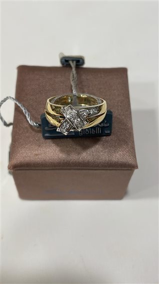 ANELLO SALVINI IN ORO GIALLO KT 18 CON PAVè DI DIAMANTI TAGLIO BRILLANTE KT 0.13 H. MISURA ANELLO 13. PESO ANELLO 5.60 GR.