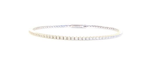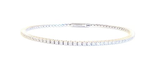 Bracciale in oro bianco e diamanti modello tennis a griffe ct. 1,14 H. Lunghezza 18 cm Larghezza 1.8 mm. Altezza 2.9 mm. Chiusura a linguello con logo Salvini. Peso 8.7 grammi. Garanzia e Certificato di Autenticità Salvini co assicurazione rapina e scippo e scatola originale.