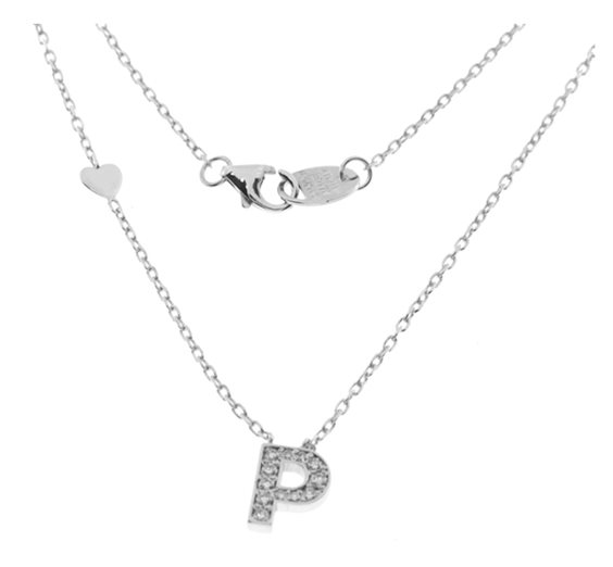 Collana Salvini in oro bianco 9kt. Lettera P. Colore diamante GH.
