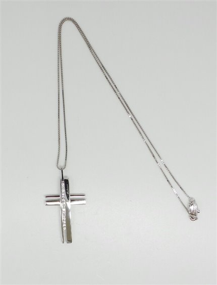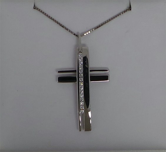 Girocollo SALVINI con pendaglio a forma di croce in oro bianco con diamanti taglio brillante ct totali 0.25 colore H.Catena maglia veneziana, lunghezza 43 cm. Garanzia ufficiale SALVINI e assicurazione contro scippo e rapina per 3 anni gratuita.