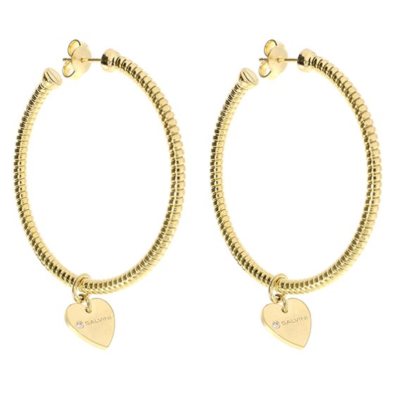 Orecchini Salvini collezione Minimal Pop in oro giallo kt 9 cerchi aperti con ciondolo cuore con brillante kt 0.02 GH.