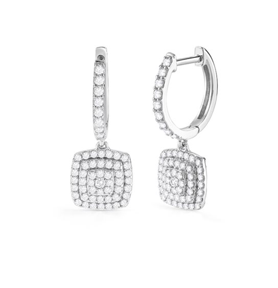 Orecchini in oro bianco con diamanti, della collezione Bagliori di Salvini.