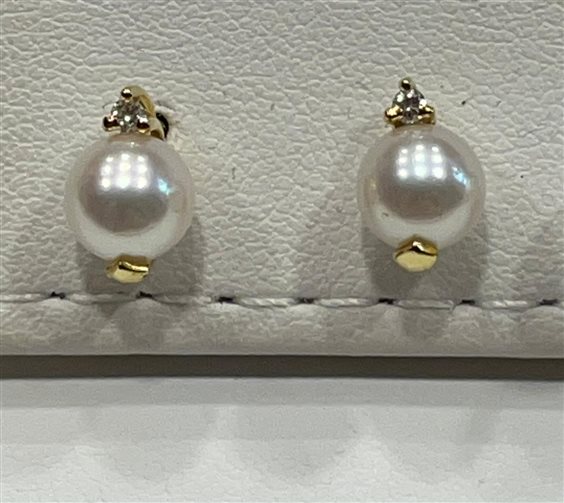 ORECCHINI MIKAWA (SALVINI CASA DAMIANI) IN ORO GIALLO KT 18 CON PERLE ACQUA SALATA MM 6.5/7 CON BRILLANTI KT 0.05 H