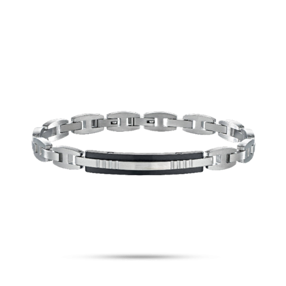 GIOIELLI, COLLEZIONE: ENERGY, CATEGORIA: BRACCIALE, MODELLO: MASCHILE, MISURA: 220MM, COLORE: ARGENTO E NERO, MATERIALE: ACCIAIO, PVD NERO