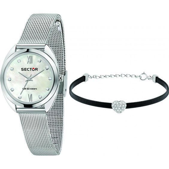 OROLOGIO SECTOR 955 - R3253518505 - Genere: Donna, Materiale e finitura cassa: Acciaio, Misura cassa: 37.5x32mm, Spessore cassa: 8,20, Vetro: Vetro minerale, Materiale cinturino: Acciaio, Colore cinturino: Silver, Chiusura: Clip and hook, Water resistant: 5 atm, Garanzia: Ufficiale 2 anni Sector, Confezione: Originale Sector
