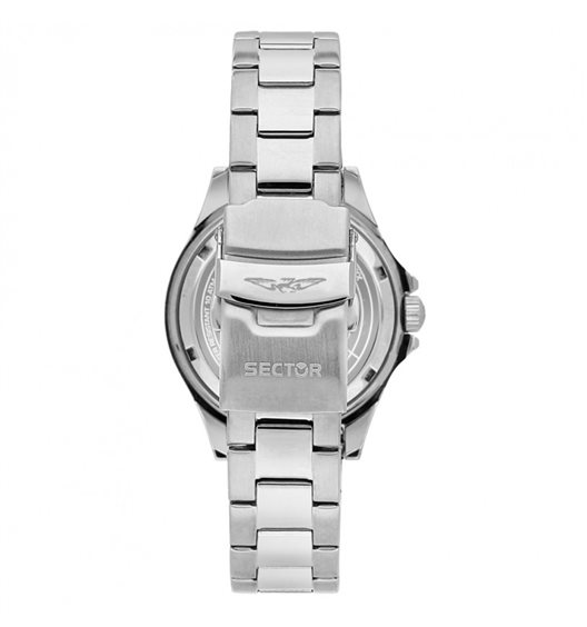 Orologio Sector 230. Cassa (mm 39) e cinturino in acciaio. Lunetta in alluminio. Quadrante verde con indici applicati e datario al 3 (lentina), lancetta dei secondi arancione. Movimento al quarzo, vetro minerale. Impermeabilità 10 atmosfere.